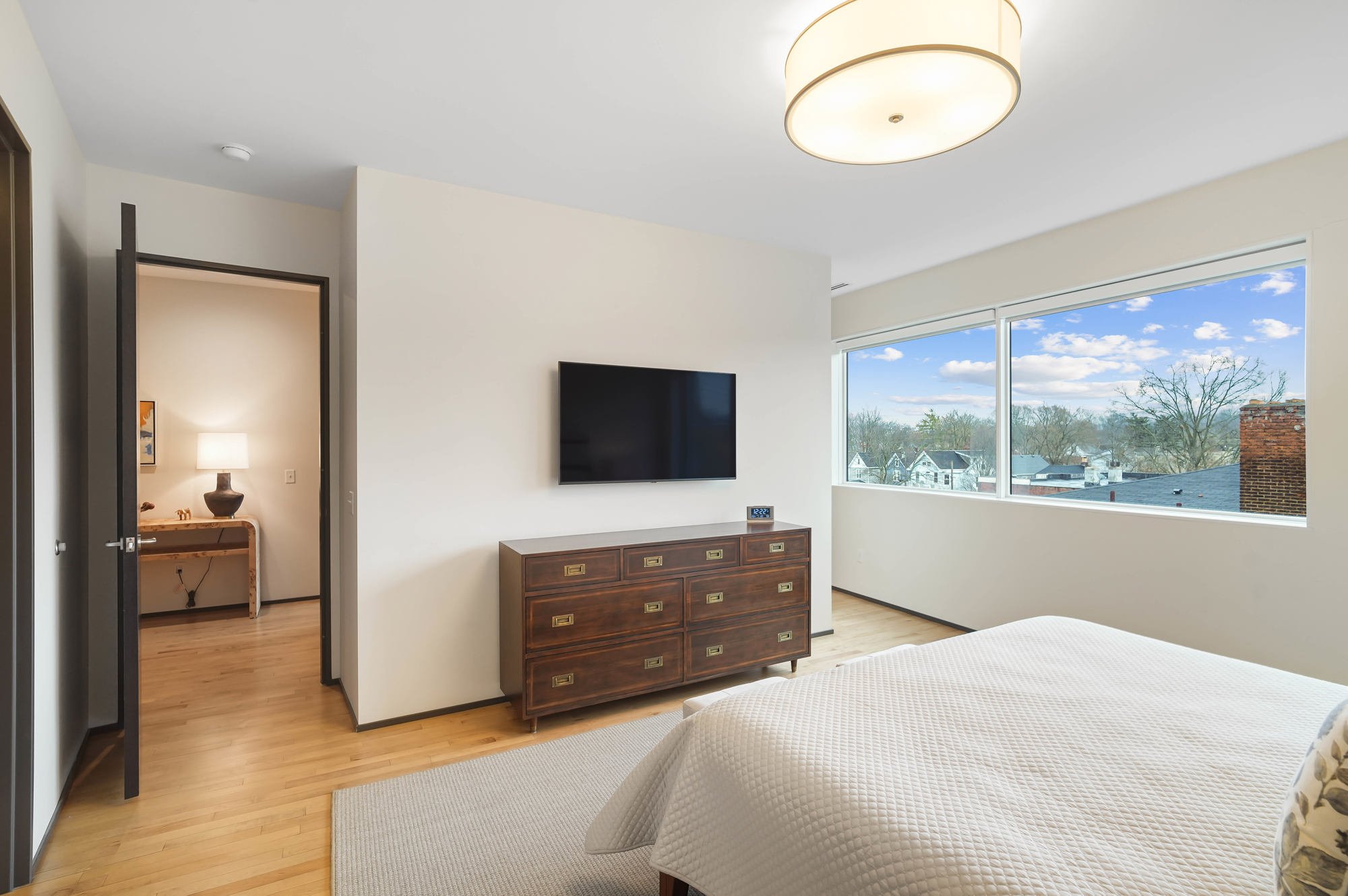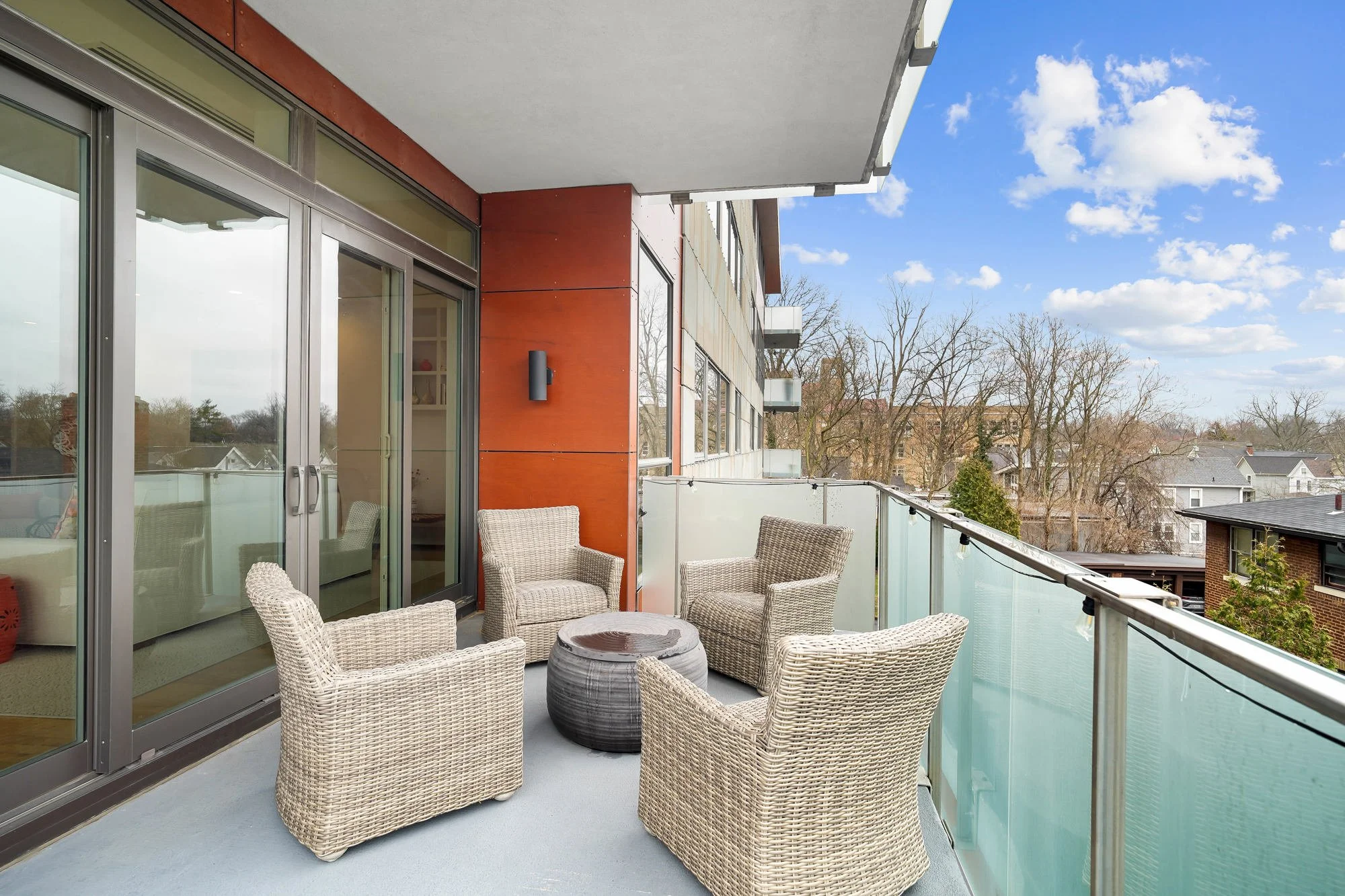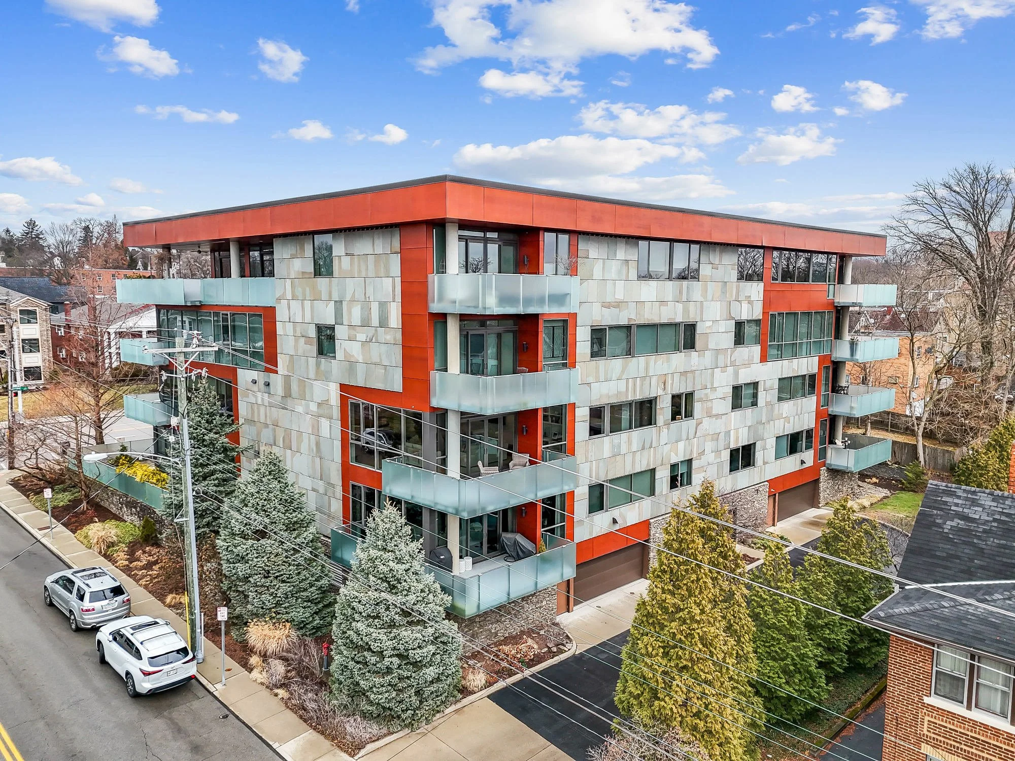 Enjoy sophisticated luxury living in one of Hyde Park’s most architecturally striking boutique properties at 2801 Erie Avenue, designed by renowned architect Jose Garcia. Located in the heart of Hyde Park, just one block from Hyde Park Square, this premier and exclusive building offers just 13 private residences, offering a rare blend of modern design, privacy and prestige. Inside, Unit 202 showcases a bright, open concept layout framed by floor-to-ceiling windows that flood the space with natural light. The expansive living and dining areas flow effortlessly into a stunning chef’s kitchen featuring sleek white cabinetry, quartz countertops, a large waterfall island with seating and high-end stainless-steel appliances – perfect for both everyday living and entertaining. The primary suite offers a tranquil escape with large windows and a spa-inspired bath complete with floating vanity, walk-in glass shower and a sculptural soaking tub. The well-appointed secondary bedroom suite is ideal for guests or family, complete with its own beautifully finished full bath. Both bedroom suites feature sizable walk-in closets with custom organization. The versatile glass-enclosed study boasts custom pocket glass doors that allow the space to remain open and light-filled or closed for privacy as needed. A full wall of sleek built-in cabinetry and workspace creates a polished home office environment that blends seamlessly with the condo’s modern design. Additional highlights include a stylish powder room with sleek floating vanity and modern fixtures, hardwood flooring throughout, convenient in-unit laundry, ample storage, two garage parking spaces and secure building access. Step outside to enjoy the outdoors on the private, covered wrap-around balcony – perfect for morning coffee or evening relaxation – while taking in surrounding treetop and neighborhood views. Move in and enjoy elevated and refined urban living in the heart of Hyde Park, steps from restaurants and shopping and minutes from Downtown Cincinnati.